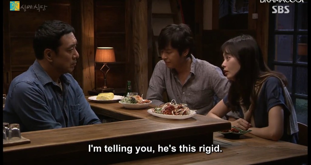 La versión coreana, que es la que he visto primero, es una deliciosa caja de galletas. La comparo con la comida porque (igual que en el original japonés) cada episodio cuenta una historia que se origina, engarza o discurre a cuenta de un platillo típico o al menos habitual. Nada de alta cocina o cosas complicadas. Lo de todos los días. Vamos, lo que te pillas en la barra del bar para picotear o echar unas raciones. Que luego enganchas hebra con el tipo del carajillo y la frutera echando el café antes de subir la persiana, solo que aquí son aves nocturnas como las que esperan en el cuadro de Hopper.
