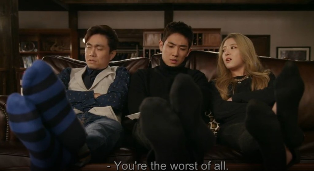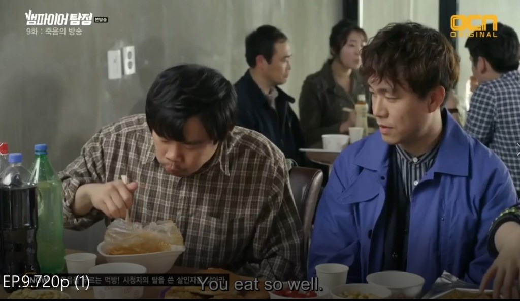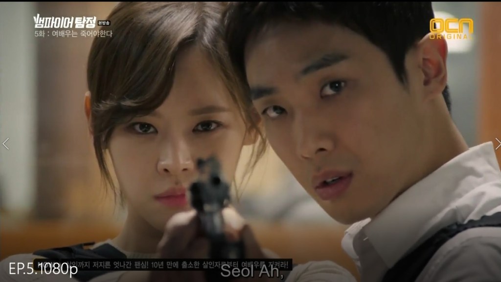 Entre sus casos de detective típico y sus cruzadas contra el Imperio del Mal cual trasunto de Blade, no le da la vida. Menos mal que tiene buenos amigos y socios que lo apoyan: su ex-jefe y ahora socio de la agencia (Oh Jung Se, un todoterreno siempre eficaz), y la rubia gorrona, que se ha declarado secretaria y socia ciberexperta, y colado en la casa donde a su vez se han metido ellos de inquilinos al resbalón (Lee Se Young, cada vez que veo a la colega, pienso: sombie, sombie, porque la primera vez la vi fue en Korean Odyssey, aunque rodó antes la susodicha del Detective Vampiro)