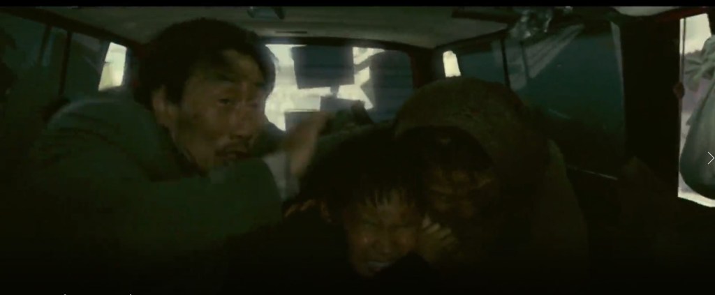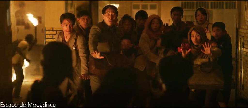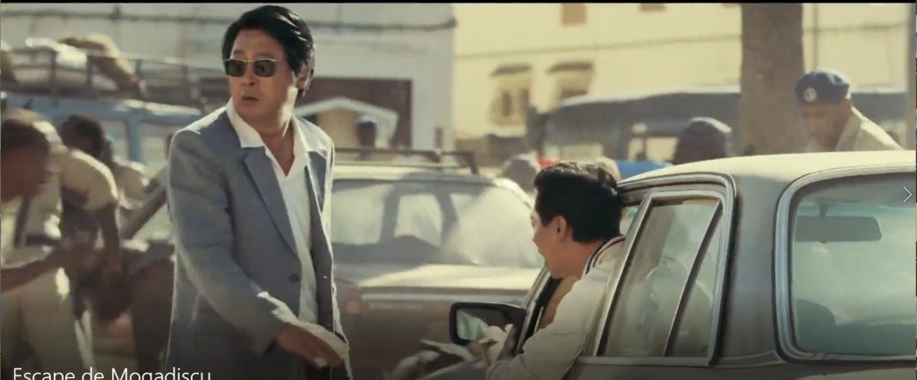 Aquí no le da tiempo al guaperas ni a seducir señoras ni a ponerse malito. Es que los coreanos no tienen el condicionante de lo políticamente correcto (y cinematográficamente desastroso). En medio de todo este lío, no hay historias amorosas (para ligar estamos…), las señoras no son “mujeres empoderadas” (son los hombres, como responsables, los que las protegen a ellas y a los niños, bastante hacen ellas con ayudar y sobrevivir); no hay “cuotas de inclusión racial de personajes positivos” porque hay muchísimos personajes y figurantes de color negros como la pez, (sí, claro, esto es Africa), pero todos ellos son como mínimo indiferentes, y casi siempre peligrosos y salvajes; ninguno de los nacionales va a ayudarles o salvarles, y como mucho les pasarán la cuenta correspndiente. Evidentemente, claro, porque en medio de una guerra con tres bandos (los del gobierno, los rebeldes y los bandidos sin más), puestos todos de alcohol y drogas hasta arriba, sin la mas mínima autoridad y con los ojos puestos en el saqueo y la venganza, todos los extranjeros eran bultos aprovechables de una forma u otra. Así ocurre lo que ocurre, que la embajada norcoreana, que creían en Pyongyang que no corría peligro por la colaboración que había ofrecido a los rebeldes, es asaltada y por los pelos se libran de acabar todos ellos hechos carne picada. Pues nada, a salir por patas y buscar refugio hasta poder escapar del país….