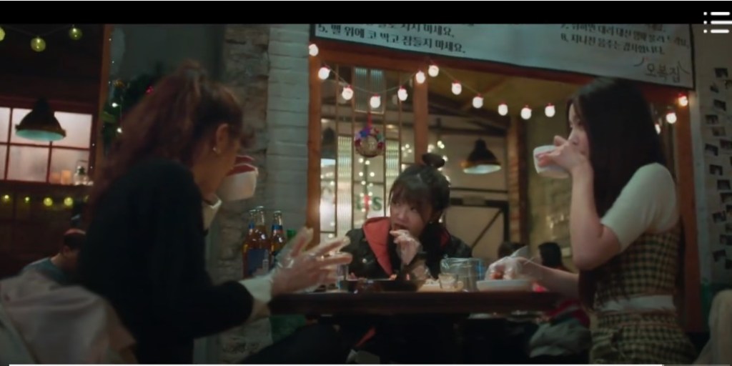 Con tan etílico tema, cuelgo hoy entrada dedicada a un k-drama breve (doce episodios) que debería etiquetarse como “altamente inflamable”. Tres amigas que en alegre alimón o llorosa solidaridad vacían botellas de todo lo que tenga interés alcohólico, sobre todo soju, el licor coreano por excelencia (no confundir con la salsa de soja, aunque entre botella y botella las chicas se zampan unos cuantos platillos sabrosos). Una tragicomedia de las que te etiquetan de “slice of life”, con sus momentos de desmadre y sus tristezas. Podríamos etiquetarla también de misterio, porque es misterioso cómo consiguen las tres sobrevivir a la ingesta sin acabar alcoholizadas en estado terminal sin hígado, y apenas unas resacas que no son nada para lo que han plimplado (el cómo consiguen beber sin pagar se acaba explicando en un capítulo). No hay intención moralizante, no acaban “castigadas por sus pecados”, y el alcohol se alaba como un dulce consuelo en los momentos mas negros de la vida. Bebe y supéralo, lo que sea: una alumna con problemas, un trabajo miserable, un jefe abusón… ¿Que tu presunto novio te pone los cuernos con otro caballero? Bebe. ¿Que te mandan a trabajar a una perrera porque no te dejas tocar el culo? Bebe. ¿Que el director de tu colegio te ha echado porque es un imbécil? Bebe hasta ahogarlo. El alcohol es pegamento y carburante de las solteras y descatalogadas. Si tu cita a ciegas es incapaz de soportarte el ritmo, lárgalo con viento fresco. A estas alturas no estamos para tonterías. No es de extrañar que en Corea del Sur haya arrasado entre los espectadores que se identifican con ellas: treintañeras, trabajadoras y aborrecidas de los ejemplares masculinos que las rodean y en algunos casos las torean. Aquí las señoras mandan, eligen y pelean por su espacio y su derecho a tomar decisiones, sean buenas o malas. Bien por ellas. La escena con los deseos de año nuevo deja claro cuales son sus objetivos personales, y al final de la serie podeis comprobar quien de las tres amigas lo ha alcanzado… jejejeje…Las tres damiselas cual guindas al marrasquino acaban teniendo sus roces con la encrucijada de quitarse de beber para siempre. Un familiar, un alumno… o un aviso en la propia puerta. Aviso de la fragilidad y la mortalidad. Aquí el alcohol no es bastante, menos mal que las tres tienen quien las ayude a pasar el mal trago. Se abrazan ellas ellas y son abrazadas por esos caballeros que a veces destacan entre la multitud de semovientes. No todo está perdido para la causa masculina