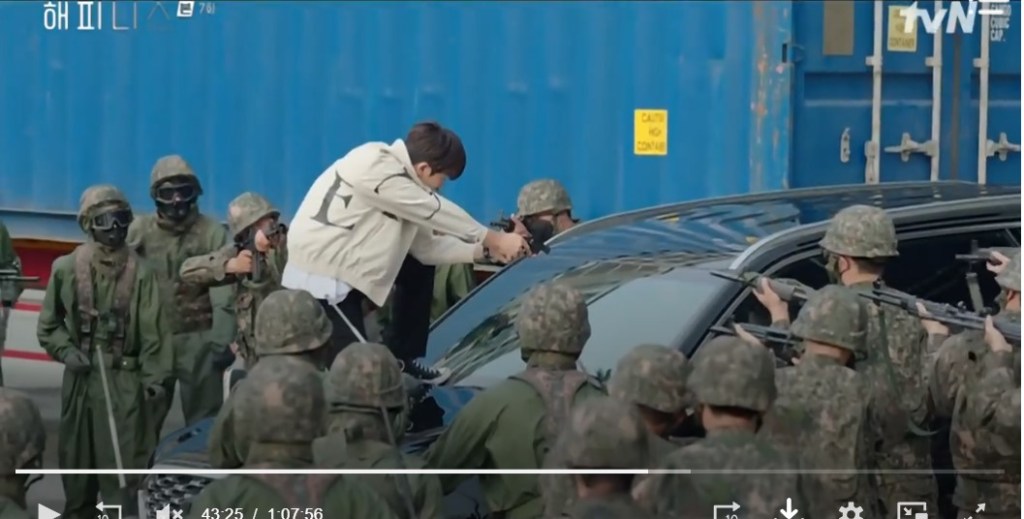 El protagonista masculino es una figura sólida (en todos los sentidos, porque el mozo tiene las pintas de exjugador de beisbol, que se supone es su ocupación antes de meterse a policia, nada de los etéreos donceles de otras producciones), y se echa en los amplios hombros lo que haga falta. Park Hyung-Sik, el actor, está muy convincente, y está claro que haber tenido al tiempo una carrera de cantante de K-pop no le ha impedido trabajar la interpretación, donde ha acumulado premios. La chica, una badass de aupa, es de los GEOs, y reparte al alimón con el compi unas ostias como panes. A esta actriz (Han Hyo-Joo, más trabajo en películas que en series, aunque tambien tiene su CV) la vimos de protagonista en aquel k-drama de los dos mundos entrecruzados tan bien hecha, solo que aqui reparte mas leña y hace menos comedia. No está el microondas para pizzas, entre otras cosas porque el bloqueo les ha dejado sin agua, sin electricidad y sin comida.