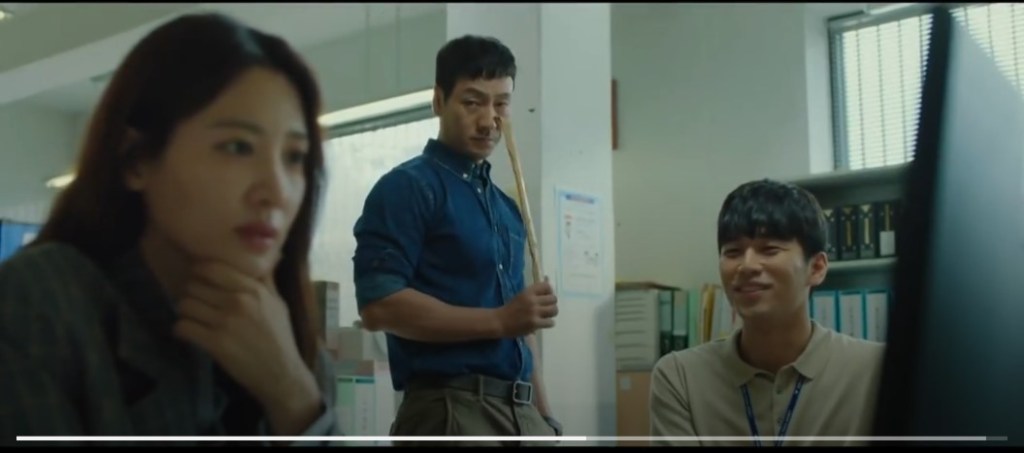 Aunque el actor Park Hae Soo sale primero en la lista de los intérpretes, ha trabajado menos que su colega. Ojo, menos pero no peor. Su personaje no tiene “dama de interés”, aunque insinúa una atracción entre el colegueo y el refocileo con la analista coreano-estadounidense (Eugene Hathaway… un nombre de género ambiguo para una chica boom boom). Es que el tener una madre medio demenciada a su cargo marca mucho, y las responsabilidades que acarrea funcionan como un anafrodisíaco. No es el único personaje a cargo de una madre dependiente, quizás rompiendo una lanza a favor de los hombres como cuidadores en la familia, y la desesperación y dolor que hombres y mujeres con ese rol tienen que afrontar con mínimas o nulas ayudas (recordemos que los k-dramas incluyen con frecuencia temas sociales para abrir debates en los espectadores). Por lo menos aquí los varones de las familias han tenido la vergüenza suficiente para no buscarse una esposa sufridora en casa que les haga de chacha de sus madres con Alzheimer a cambio de un papelito en el registro civil