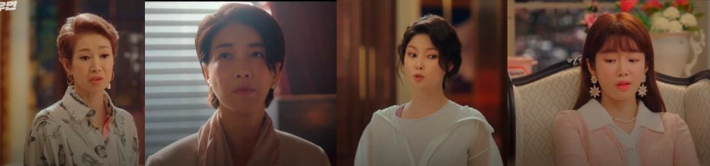 Definitivamente, una serie de mujeres. Los hombres están para dar apoyo (el heredero retornado, el ayudante del fiscal) o estorbar (el fiscal jefe, el cuñado…), porque sus líneas son muy secundarias… que no aburridas: esa pareja de gansters a modo de ángeles de la guardia (ey, esa era una película clásica en BN, con los gansters educando a una huerfanita)