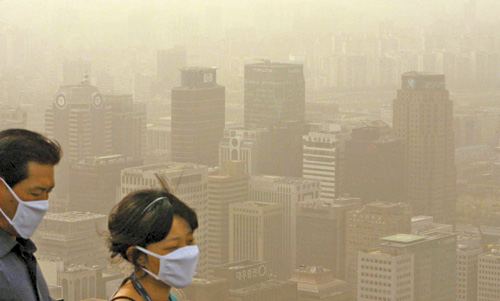 Lo del clima en Corea no es cosa de poca importancia: el invierno es frío debido a la prevalencia de las corrientes de origen siberiano (la temperatura puede bajar hasta -20 °C en Seúl y en las zonas septentrionales del interior, y alrededor de -10 °C en el sur), y en verano prevalecen las corrientes meridionales de origen tropical, afectado por el régimen de los monzones. Corea del Sur tiene un régimen pluviométrico opuesto al mediterráneo: los meses más secos son los de invierno, mientras que los meses más lluviosos son julio y agosto. Además, en verano y a principios de otoño pueden llegar al país tifones: esas peazo tormentas tropicales que arrasan con todo. Encima, en invierno y especialmente en primavera (de marzo a mayo) puede llegar a Corea del Sur (pero especialmente al área de Seúl) polvo amarillo (HwangSa en coreano), originario de los desiertos de Mongolia y China, que forma una neblina característica y puede provocar problemas respiratorios e irritación ocular (y fastidiar bastante la vida diaria). Como para no estar todo el día echando un ojo al barómetro y con la oreja puesta en el parte metereológico…