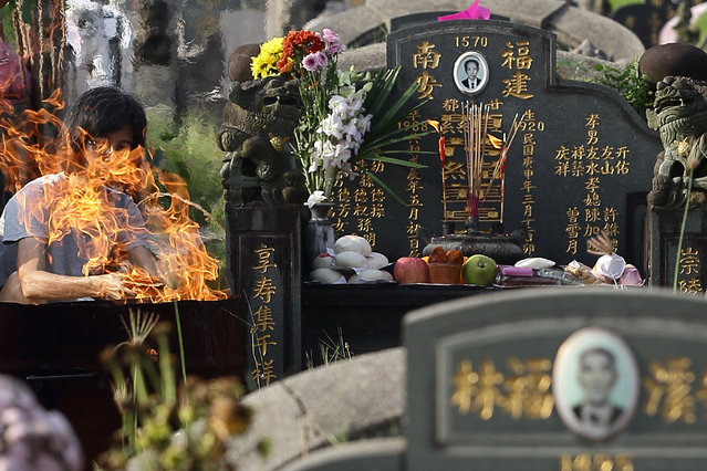 En Abril, toca el Festival Qingming (15 días después del Equinoccio de la Primavera, o sea el 4, el 5 o el 6). También llamado el Día de Barrer las Tumbas, el Día Chino del Recuerdo o el Día de los Ancestros, es respetado por los chinos de la etnia Han por todo el mundo. Ese día, creyentes y no creyentes visitan las tumbas, limpian los cementerios, rezan a los antepasados y hacen ofrendas rituales como platillos tradicionales y quemar incienso “dinero de muertos” o “del infierno”, réplicas de papel de casas, coches, objetos de lujo… que se espera sirvan a los difuntos para comprar cosas en el Mas Allá. La tradición tiene miles de años de antigüedad: se cree que evolucionó a partir del Festival de la Comida Fría (siglo 7 aC), y ese día desde el emperador hasta el mas miserable paisano aplicaban la piedad confuciana (ya se sabe que el culto a los antepasados es un pilar en el confucianismo). En ciertas épocas fue tan exagerado el gasto y el desmadre (porque después, claro, los parientes vivos que se habían reunido montaban un jolgorio que podía incluir peleas de gallos y otros alborotos… ahora se conforman con jugar al socatira y volar cometas), que en el siglo 8 dC tuvieron que limitarlo a un día de duración, una vez al año.