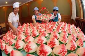 En Octubre, se completa la triada con el Festival Doble Nueve –重陽節– (Chong Yang Festival, Chung Yeung Festival), que se celebra en la China Continental, Japón y Corea. Se celebra el noveno día del noveno mes, o sea a principios del mes. Como la pronunciación en chino es igual que la frase “para siempre”, ya puestos se aprovecha para honrar a los antepasados. La tradición manda que ese día se suba a una montaña alta (no valen tozales y montes), se beba licor de crisantemo, se adornen los cabellos (o se lleve en una bolsa) con ramitas de Zhuyu (cornejo), se coman pastelitos Chongyang (Un pastel de nueve capas en forma de torre con dos ovejitas de harina encima y a veces una banderita roja y velitas de cumpleaños) o se disfrute de las flores de crisantemo en jarrones o jardines… Si, la asociación de esta flor y los muertos viene de Oriente. O sea, regalarla en ramos o arreglos florales a enfermos o personas mayores es MUY de mal gusto. Mejor colocarla en ramos o adornos en puertas y ventanas, o en prendidos en el pelo (junto con el cornejo) para repeler el mal y la enfermedad. De paso, te acercas a las sepulturas, las limpias un poco, haces las ofrendas de fruta y cochinillo asado, te zampas en familia el cochinillo y la fruta (los fantasmas se conforman con el aroma de las ofrendas), vuelas cometas, haces pasteles caseros, recibes la visita de las hijas casadas,
