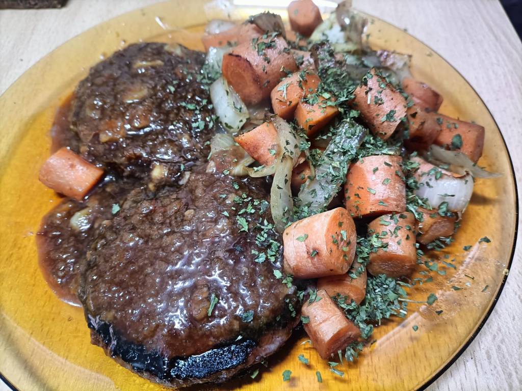 Si os habéis fijado un poco en las series japonesas, y no digamos si habéis metido la cabeza en el mundillo del anime y el manga, os habréis percatado de que en muchas situaciones se sirve en la mesa una especie de hamburguesas con salsa, que no desmerecerían de los platos combinados de la ruta 66. Efectivamente, es lo que pensabais: la cocina es un arte que viaja sin complejos por los caminos del apetito. Si actualmente estamos con la ola de japonismo que nos invade en la gastrofusión (makis de fruta… por Dios…) antes fue la colonización yanqui de las izakayas, los restaurantes familiares y los hogares. Carne picada y amasada en bola, aplastada para su mejor cocinado y acompañado de una meta-salsa que mezcla salsas que usaríamos directamente en el plato. Esto es, ni más ni menos, el hambāgu (ハンバーグ), que como vemos hasta en el nombre se puede detectar su origen. Hermano mellizo es el hambāgā (ハンバーガー, que es la típica hamburguesa en panecillo con aditivos diversos. Hablaremos y cocinaremos hoy la primera, servida en plato y abundante salsa