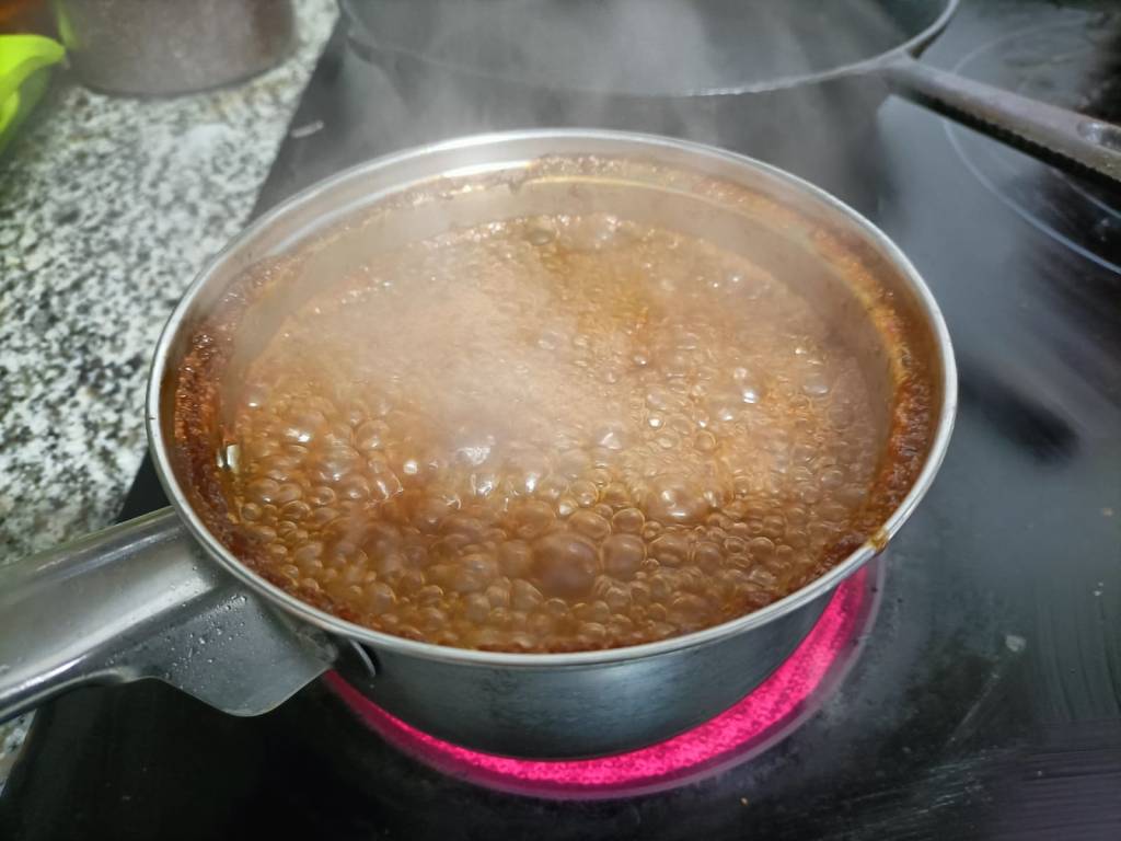 Empezamos por la salsa, y tenemos dos opciones: si estamos inspirados, compramos la salsa tonkatsu en la tienda, tomamos 3 cucharadas y la mezclamos en un cazo con 1 cucharada de mantequilla, 3 cucharadas de vino tinto, 3 cucharadas de agua y 3 cucharadas de kétchup. Ponemos la mezcla al fuego suave y que haga chupchup un ratito, hasta que quede con densidad mermelada.