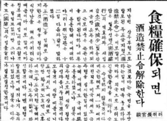 Después del fin del dominio colonial japonés, la escasez de alimentos continuó y se mantuvo la ley del impuesto sobre las bebidas alcohólicas. El gobierno coreano en los peores momentos prohibió la producción de makgeolli (licor a base de arroz), pero en 1976, la producción se expandió y se logró la autosuficiencia alimentaria, lo que permitió que el makgeolli pudiera producirse de nuevo. Fue un hito que marcó la despedida de los tiempos más difíciles.