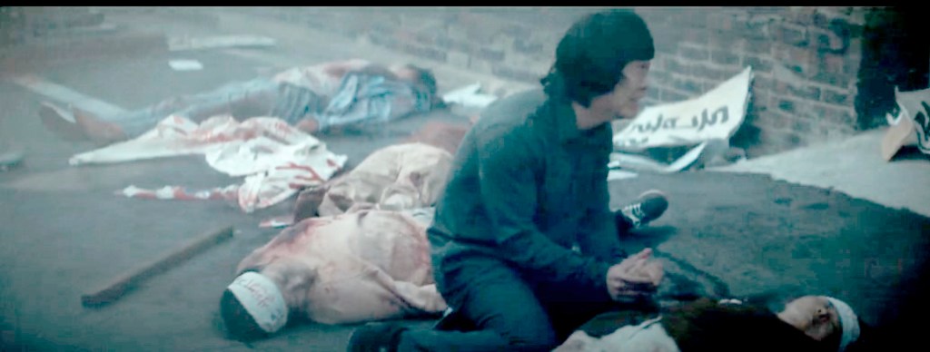 La escena de la masacre al principio crees que no tiene mucho que ver con la historia, que solo es una excusa para explicar que el presidente es un bestiajo y se merece lo que le pase… si, si… atentos al pajarito…