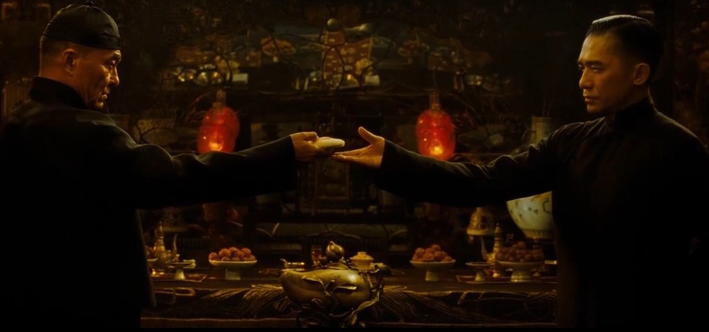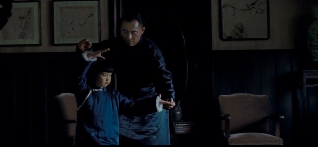 En esta película, se empieza por presentarnos a la familia de Ip Man (una excusa para hacer unas preciosas escenas de ambiente) y su reunión en Foshan en vísperas de la invasión japonesa de 1936 (la guerra sino-japonesa empezó en 1931 pero tuvieron que avanzar lentamente) con la maestra de kung fu Gong Er, que está allí para celebrar la jubilación de su señor padre por todo lo alto en el burdel La Casa de la República, también llamado por sus clientes el Pabellón Dorado (lugar donde se iba a hacer de todo y, accesoriamente, contratar señoritas de carnal comercio). Es el momento en que prosperan las artes marciales y además se está consiguiendo la unificación de las distintas escuelas. Evidentemente, las luchas de poder por heredar el puesto son sabrosonas. Pero bueno, de momento el prejubilado está organizando un combate de exhibición (Norte vs Sur) y los jefazos reclutan a Ip Man como representante sureño. Pues ya está liada, porque Masan, el heredero designado del Maestro, es un capullo redomado. Todo por no aceptar que las mujeres (mayormente, su hija) pueden heredar. Se suceden las peleas con una razón (o excusa) tras otra, por entrenamiento o por desafío.
