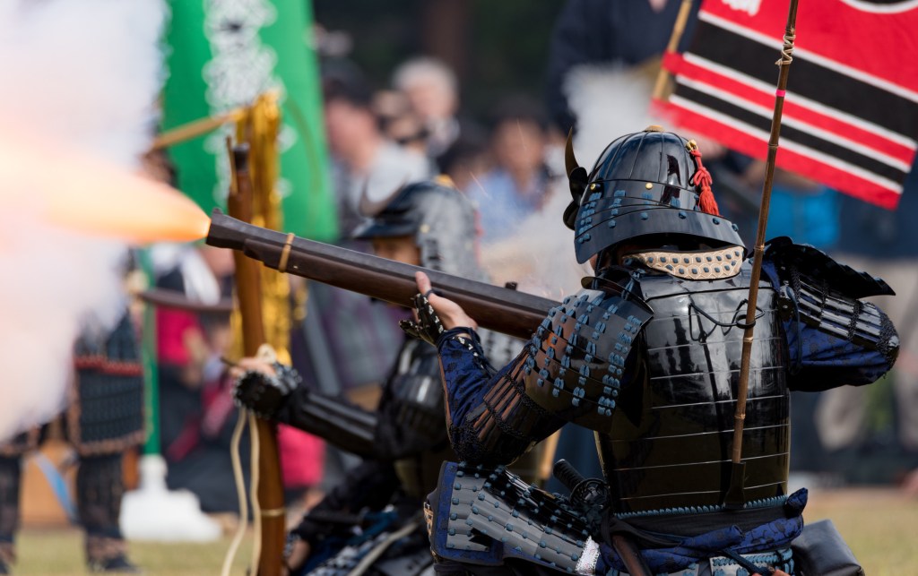La duda básica es cómo recibieron los japoneses las armas de fuego cuando las llevaron por primera vez los europeos. Pues mira, resulta que los que les enseñaron a hacer PUM fueron… los portugueses. Esos señores de bombachos y gorros divertidos que paseaban con sus criados negros asombrando al pueblo japonés. En 1543, los tipos de la saudade llegan a la isla de Tanegashima (Sur de Japón) y con ellos vienen los arcabuces de mecha. Em seguida, los mas espabilados entendieron que ese extraño objeto que producía una explosión y lanzaba bolas de metal era un interesante añadido en la guerra y la caza. Como el señor local, Lord Tokitaka (1528-1579), que nada mas probarlos organizó herreros y aprendices para replicar tan asombrosos objetos. Oda Nobunaga (1534-1582), el poderoso daimyo unificador de Japón, hizo una enorme compra a los portugueses, y desarrollo un sistema de descargas rotatorias, que aseguraban fuego constante (20 años antes de los europeos). Nobunaga estrenó esta nueva táctica en la Batalla de Nagashino (1575), durante la cual sus 3000 arcabuceros decimaron la supuestamente invencible caballería del poderoso Clan Takeda. Para el año 1582, aproximadamente un tercio de los soldados en los ejércitos de todos los grandes señores de la guerra consistían en arcabuceros. A la versión japonesa de estos arcabuces se les llamó «Teppô «o “Tanegashima”, debido al nombre de la zona donde llegaron con ellas los europeos