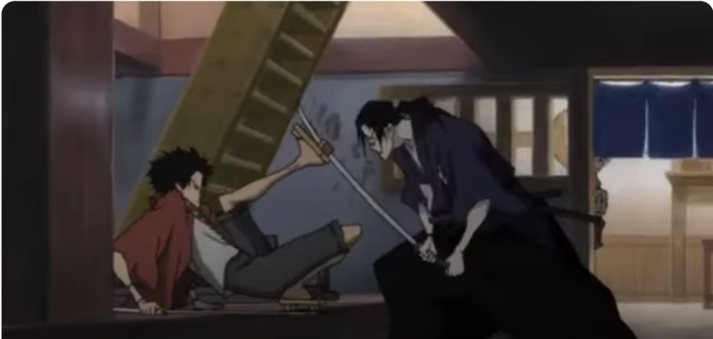 Samurai Champloo: y vamos a por la primera, que es también la más antigua. Esta serie, de una sola temporada, se emitió entre 2004 y 2005, y fue el segundo trabajo de Watanabe como director después de Cowboy Bebop. El estilo de animación es muy parecido, con personajes patilargos y pelos alborotados, mucha tinta plana y sombreados resueltos con bloques de color oscuro (que ya os digo, visualmente es fantástico, tanto en el color como en el diseño y la composición).