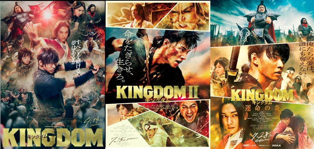 En la tercera película (Kingdom 3: la Llama del Destino), es el reino de Zhao el que ataca Qin. A estas alturas ya me he perdido el asunto de quien ataca a quien, y me limito a disfrutar los grandes escenarios, los planos generales de batallitas y tal. Ofrecen mas información sobre los orígenes de Eisei y el general Okhi, a ver si vamos captando cómo han llegado a donde han llegado, y dejan el camino preparado para la cuarta entrega (Kingdom 4: el Regreso del Gran General), que esperan será en Julio de 2024, mostrando cómo Xin se dirige al castillo del general Okhi a entrenar, estudiar y espabilar.