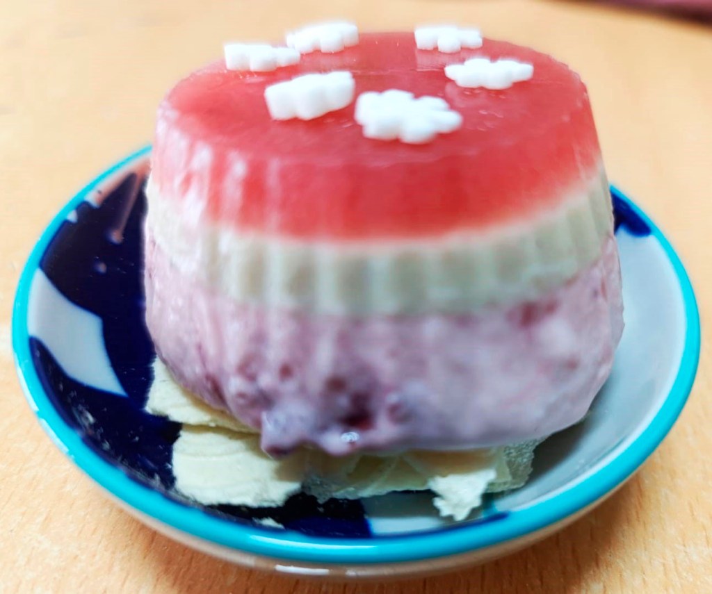Con esta mezcla terminas de rellenar los moldes y otra vez a pasar frío. Lo mejor es que una vez refrescado se pasen a la parte de nevera, para que no estén tan duras las gelatinas