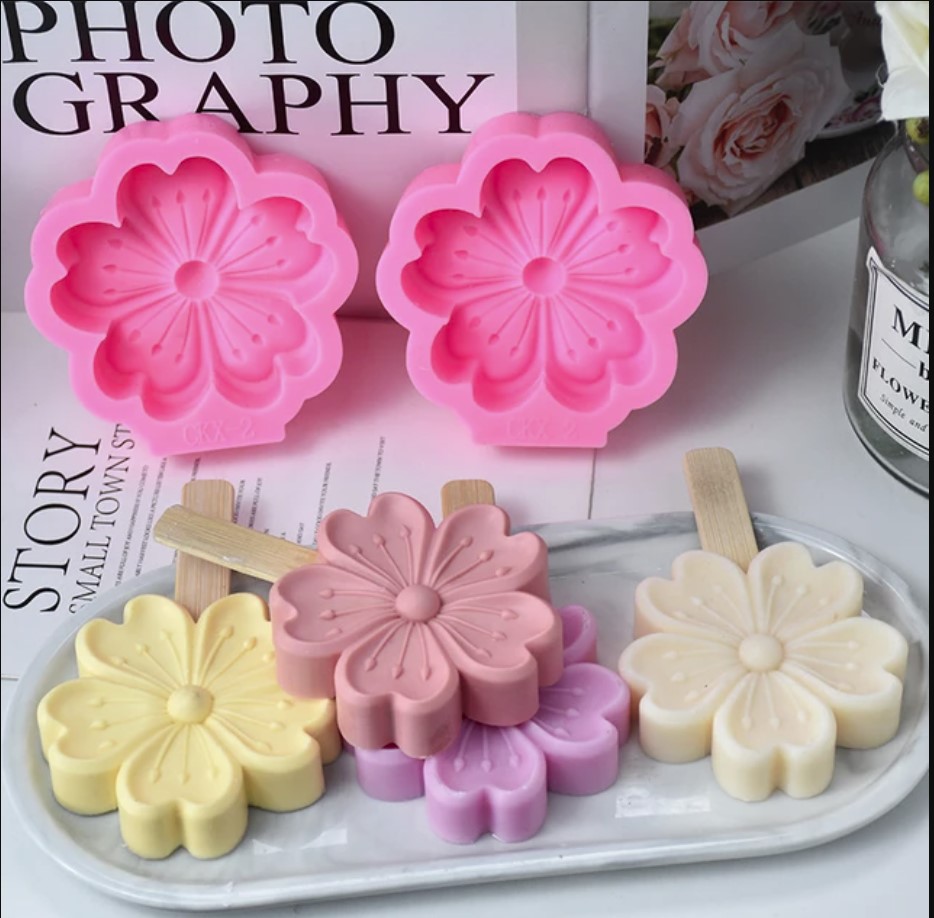 Siguiente paso: hacer un cremoso de té de sakura. En un cazo calentamos muy suavemente 60 gr de leche, 185 g de nata de cocinar y 10 gr de te de sakura (yo usé uno de Tea Shop muy rico, Sakura Beauty Blend, con té blanco y verde, cereza, rosa, almendra…). Ojo que se desborda explosivamente. Bueno, que sin que llegue a hervir lo dejáis infusionando al menos 5 minutos. Lo filtráis y le añadís otra puntita de gelatina agar-agar. En un bol mezcláis tres yemas de huevos XL con 25 g de azúcar, vertéis la leche tibia y lo volvéis a poner al fuego para que quede una crema inglesa (así, espesita). La dejáis enfriar y rellenáis otra capa en los moldes, que van otra vez al congelador (o la nevera) (VO: misma elaboración, pero en vez del agar-agar se hidratan 3 g de gelatina y se añaden escurridas una vez calentada la crema inglesa y ante de que se enfría mucho. Como opciones en el té usado se ofrece un Earl Grey, yo creo que otro té verde suave tipo floral puede valer también. No, escapularios de té negro no, por favor)