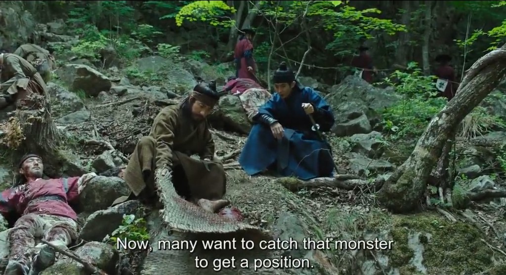 Empezaremos con la mas modernilla: Monstrum (Jakseoui Byeon: Attack of Strange Object , Mulgae , Monster , Water Monster , The Accident: Attack of the Monstrous Thing , Strange object). Se coge un vestuario de k-drama histórico, se visten a los actores con el guardarropa habitual y se les suelta por el monte para cazar un monstruo. Que igual es de verdad, que igual es histeria de masas. Y luego, cuarto y mitad de intrigas (los que quieren utilizar el follón para su propio beneficio y jueguecitos políticos varios), chorrete de aventuras, fusilada feroz de cuatro o cinco películas (eso de pringarte de barro y quedarte quieto…) y FX por cubos.