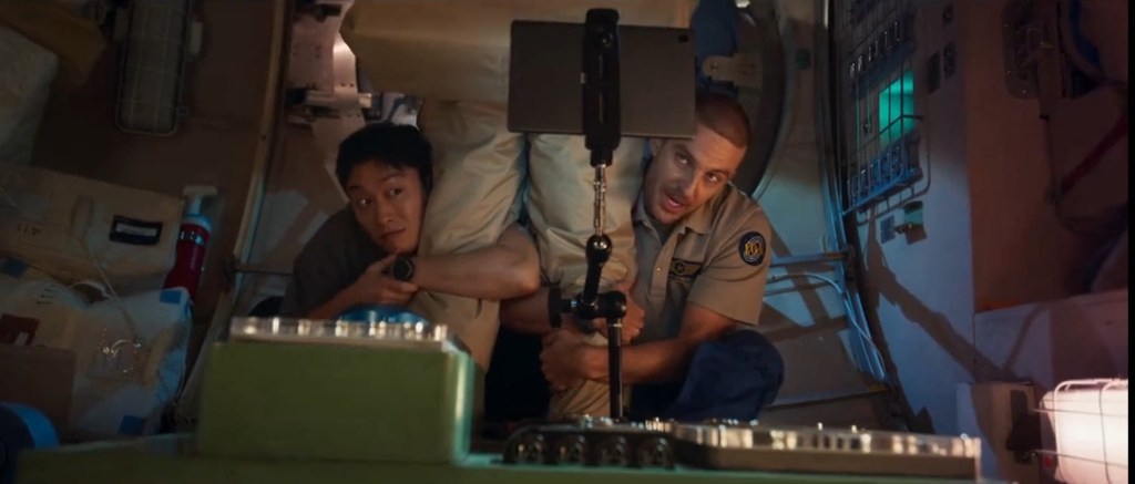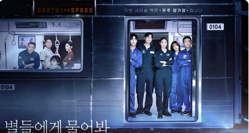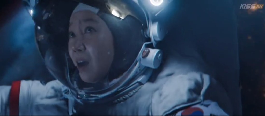 Los coreanos no tenían mucha experiencia en series y películas espaciales (no, los engendros esos de papel y cartón no cuentan), pero chico, ha sido ponerse a ello y coger carrerilla. Supongo que una ver hecho lo más difícil, o sea el atrezzo y los FX originales, ya es cuestión de realquilarlos y reaprovecharlos. Con la serie aquella del agua lunar, tuvieron que fabricar trajes espaciales para varias tallas (no voy a decir de hombre y de mujer, porque es un estilo bastante unisex) y claro, la cosa es mas fácil. Y estaba la del pobre astronauta perdido, tambien hay cosas en almacén. Optaron por un estilo de Hard Sci-Fi (o sea, ajustándose con lupa a la técnica y la ingeniería actuales o al menos, esperables en un corto plazo, para no recurrir a la fantasía o extrañas distorsiones de las leyes de la física. “uy, aquí hay mucho tocho científico, esto no es lo esperable” “ya, pero es la realidad, en el espacio no hay tiempo ni energías para los romances, y ya le hemos explicado que el sistema hidraúlico no funciona” “nada nada, que lo saquen de donde puedan”. Es curioso ver cómo los mismos argumentos que indicaban que Esto-no-puede-pasar o Aquello-es-inevitable, era obviados por “los hechos contundentes”. Que sabrán los científicos aeroespaciales del mundo del K-Drama… ¿Usar los móviles en la Estación Espacial?¿a cuanto te van a cobrar la llamada? ¿y el retardo en las conversaciones?¿masaje cardiaco interno a un ratón? pssssssssss