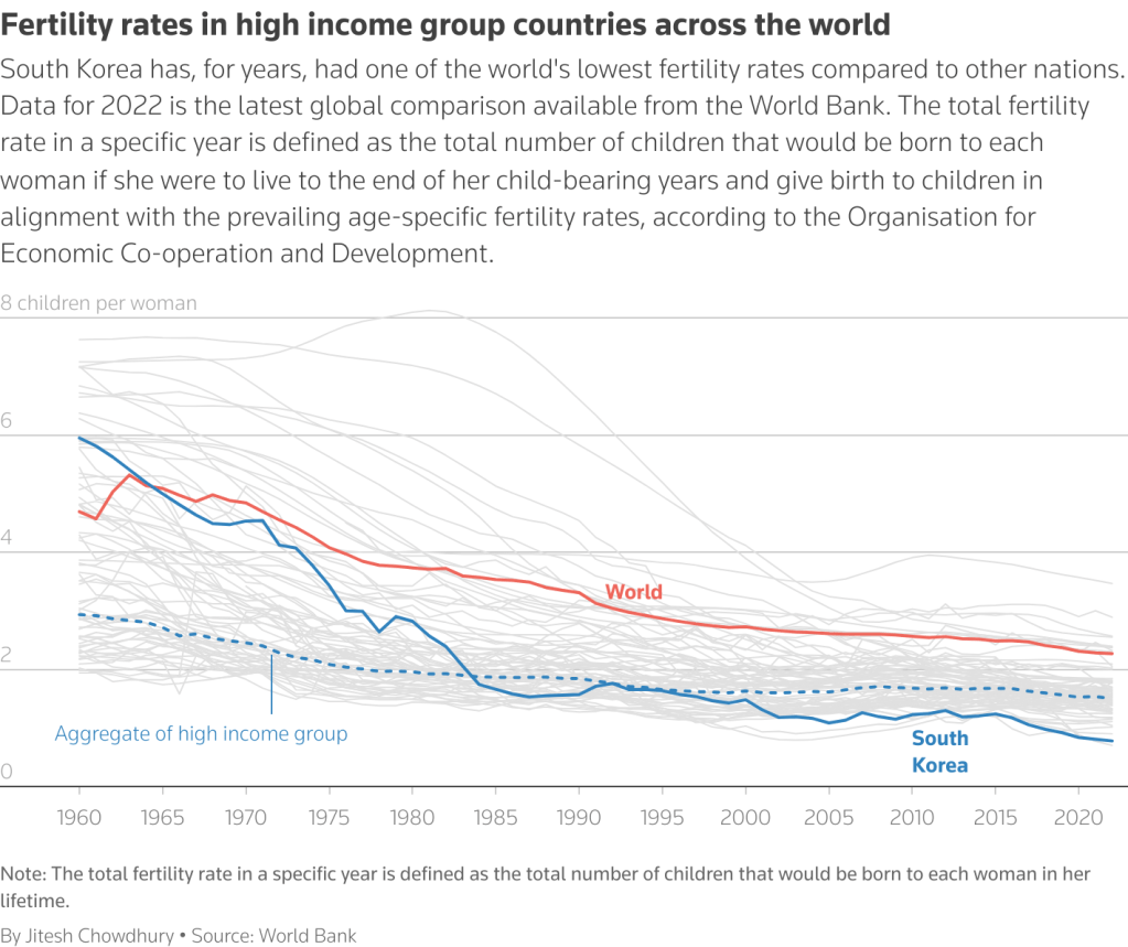 Hay varios factores muy determinantes detrás de la baja fertilidad: las larguísimas jornadas de trabajo (que a veces se extienden al fin de semana), la dificultad de encontrar vivienda (los matrimonios sobreviven en ratoneras miserables), lo difícil y caro que es casarse (la gente se casa a edades mas avanzadas, y a veces, ni eso, como mucho un amigo/a con derecho a roce), la imposibilidad de la conciliación y sobre todo, lo caro, caríííííísimo que es criar a un hijo. La educación privada es estratosféricamente inaccesible, mas que la estación espacial. Esta es una de las características que hacen especial a Corea: y es que, aunque la educación publica es gratuita y obligatoria en la escuela elemental (6 años) y media (tres años), la educación superior (3 años) ya empieza a cargar por las tutorías, y si decide pasar a la Universidad (3 años) ahí ya toca dejarse la cartera. Y quien no va a elegir Universidad, por dios, con lo mal, fatal visto que están la formación profesional y los grados medios, nanananannanana, mi niño va a una universidad, aunque luego no encuentre trabajo ni de broma y falten trabajadores manuales y técnicos.