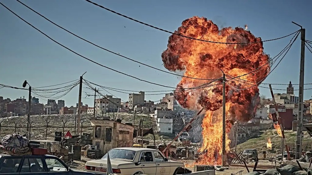 La cuestión es que es una producción muy bien hecha, con excelente fotografía, paisajes exóticos (para un coreano, a nosotros nos resultarán mas familiares), malvados barbudos asalvajinados, tiroteos, fugas imposibles, estólidos héroes, persecuciones, explosiones y todo lo que se nos apetezca. Si, claro, todo lo que pasa por debajo del paralelo 40 (de Despeñaperros p’abajo) es naranja o al menos sepia, un topicazo, pero aquí se reprimen bvstante. Y las toneladas de mugre, polvo y ruinas que lo invaden todo creo que es absolutamente verista. Que rayos, Líbano sigue siendo un país martirizado. Por cierto, la película se rodó al 70% en Marruecos (Casablanca, Marrakesh y Tánger), contó con muchos actores locales (como Nisrine Adam, la novia del taxista; Fehd Benchemsi,actúa entre gira y gira; Anas El Baz…) , e incluyó otros europeos para los papeles de personajes occidentales (Burn Gorman, USA.británico, si si, el de Torchwood; Marcin Dorociński, polaco; Foster Burden, americano, ha aparecido en lios de la resistencia, consiglieres…; Daniel Kennedy, que hace de guiri en asunto de maldiciones, barrenderos de altos vuelos, astronautas…)