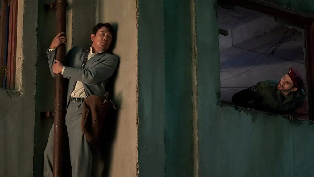 Pues que os la recomiendo para sobrevivir a estos días de agua que se resisten a ser primaverales, y aparte de que está basada (remotamente) en un caso real de secuestro de diplomáticos coreanos (el deporta nacional libanés en aquellos años, no se que os voy a cotar si la mayor sustancia es de temas de Oriente Medio. Ah si, que os recordará muchísimo a otra película que también habla de coreanos en zonas de conflicto que sólo pueden confiar en sus compatriotas para sobrevivir, la excelente Escape from Mogadishu
