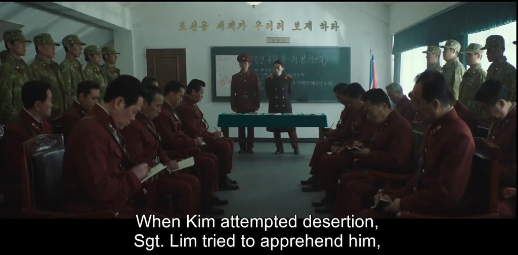 Asunto principal de la película: el protagonista es un sargento norcoreano destinado en la zona fronteriza con Corea del Sur, pegada a la DMZ (esa “tierra de nadie” que hace de amortiguador). El tipo, desde luego, no tiene ninguna intención de seguir siendo un súbdito de Mofletes Kim, y lleva meses planeando su fuga. Aunque el riesgo es altísimo y si le pillan, lo van a fusilar sumarísimamente. Pero ya toca: lleva casi diez años en el servicio militar, y cuando lo licencien va a ser imposible volver a tener un acceso tan directo.