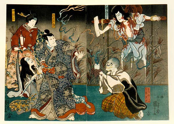 Los Yūrei (幽霊) son personajes del folklore japonés equivalentes a los fantasmas occidentales. A diferencia de los yokai, siempre se crean a partir de un ser humano que queda “atascado” en su ciclo de reencarnaciones, debido a algo que les ocurrió en vida o porque les falta una ceremonia fúnebre adecuada, como hacerles unas misas. No, espera, que lo de venir a exigir misas de difuntos para el alma es católico, y aquí hablamos de sintoísmo y budismo. O se han podido suicidar (y quedar como almas en pena), o quedan ligados por alguna obligación… Hay diversas clases, y una de ella son los Onryō: el espíritu de una persona que murió con rencor o lleno de ira y sed de venganza. Estos se dedican a la posesión de alguien útil a sus planes, que acaban llevando el desastre al ofensor (o sus descendientes o allegados o uno que pasaba por allí).