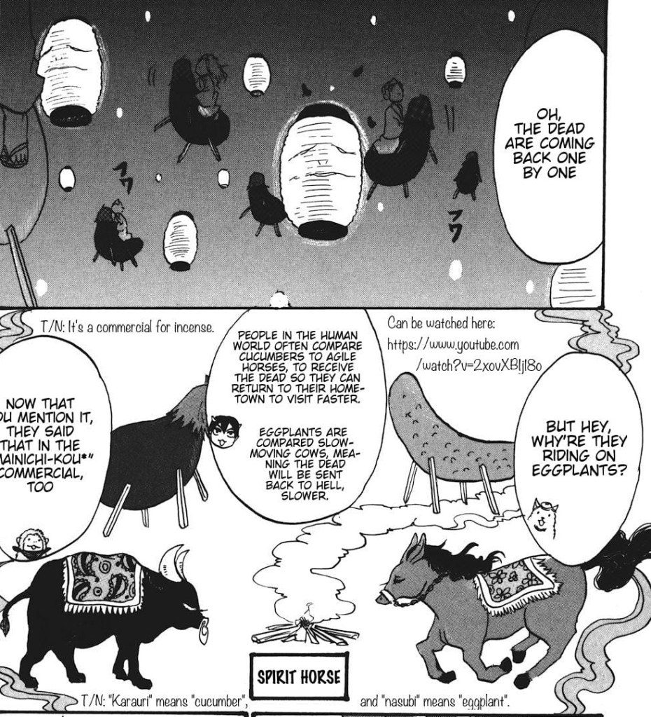 Pues nada, para disfrutar pasando miedito estos días en que se abren las puertas del Infierno y los difuntos vienen a ver que están haciendo sus supervivientes, vamos a hacer una selección de producciones de allende los mares. Que por las noches ya empieza a hacer rasquilla, llevamos jerseys cuando vamos a pasearnos la noche de totons y almetas, y los empanadicos que hemos preparado con la carne de las calabazas merece disfrutarse todos juntos, hala, ahí apretados en el sofá. Que no os digo de usarlas como inspiración de disfraces de Halloween porque me repatean esas contaminaciones culturales yanquis (si al menos fuera el original Samhain celta…) pero bien podemos acelerarnos el corazón apretados a la pantalla (N.B.: los pepinos y las berenjenas con palillos (shōryō-uma) son los vehículos -«spirit horses» y»spirit cows»– que utilizan los difuntos en Japón para salir del Infierno y visitar a sus parientes)
