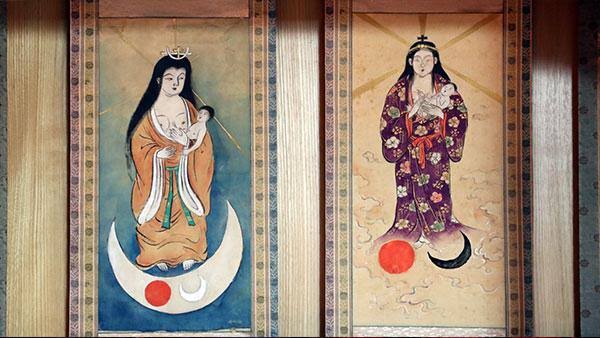 Las iconografías cristianas japonesas se alteraron de las que comúnmente se ven en Europa para disfrazar a la Virgen María y/o a Jesús como si fueran deidades no cristianas para evitar la persecución anticristiana durante el período Edo, como las que se ven en la isla de Ikitsuki [生月島] (ciudad de Hirado [平戸市], prefectura de Nagasaki), propiedad durante generaciones de un hombre llamado Masaichi Kawasaki [川崎 雅市]. Los japoneses recitan la oración católica Orasio (Orasho [オラショ] en japonés) incluso hasta el día de hoy. la Orasho eran preces y salmos secretos de los Kirishitan (japoneses cristianos) durante el periodo Edo, en los cuales el cristianismo (protestante y católico, y porque no llegaron mas iglesias) estaba prohibido. Se disfrazaban de sutras budistas para pasar disimulados, y ahora son parte del Legado Histórico que permanece en sitios como la región de Nagasaki.