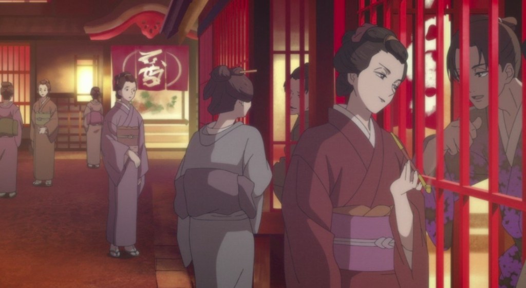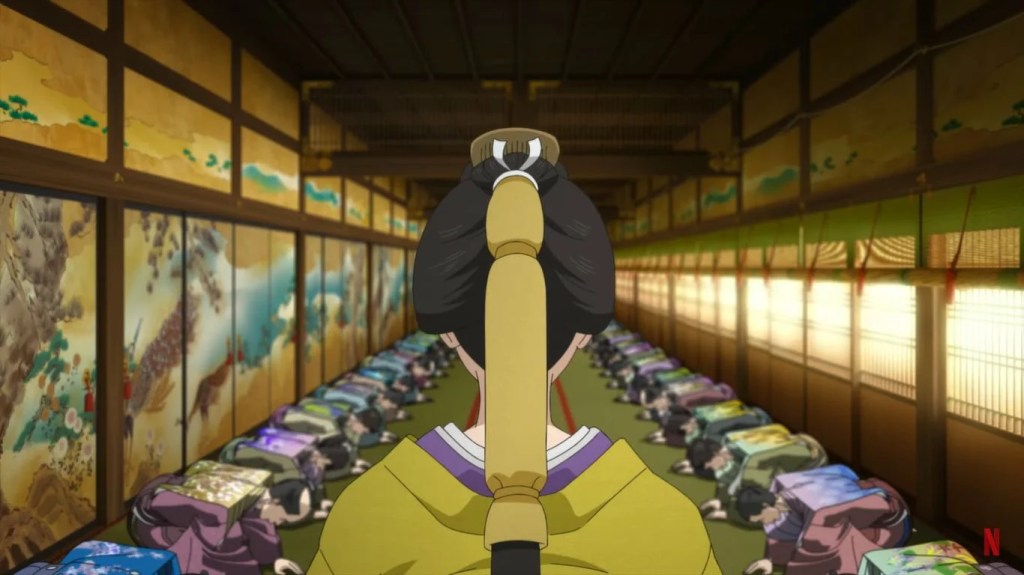 Lo dicho, este anime se narra desde la perspectiva de Tokugawa Yoshimune, la octava gobernante del shogunato Tokugawa, que está investigando que demonios pasó con la susodicha plaga y porqué en su tiempo están como están. Aunque el shogun sea una mujer, su misión no es mandar sino fabricar niños, a ver si va pasando el susto, y mandar, manda muy poco. Nada que ver con las gobernanzas de los personajes históricos originales, como Tokugawa Iemitsu.
