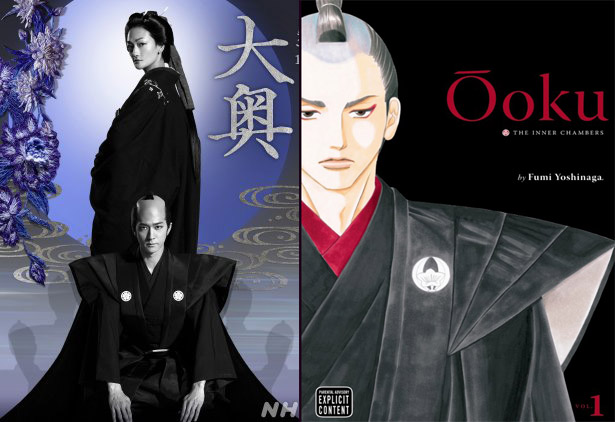 Los que cortan el bacalao son los consejeros (o consejeras), ministros (o ministras), y al shogun femenino le rodean de un harén de caballeretes guapetones que funciona a modo de parada de sementales en el Ōoku, privilegio de un shogunato poderoso, capaz de mantener aburridos y bien cuidados a los numerosos (¡3000 bellos hombres!) e improductivos zánganos (al menos, los zánganos de abeja tienen un importante papel en la colmena como reguladores de temperatura y cohexionadores de población). Evidentemente, la shogun no es siempre una mansa cordera, y las relaciones en el harén masculino son complicadísimas.